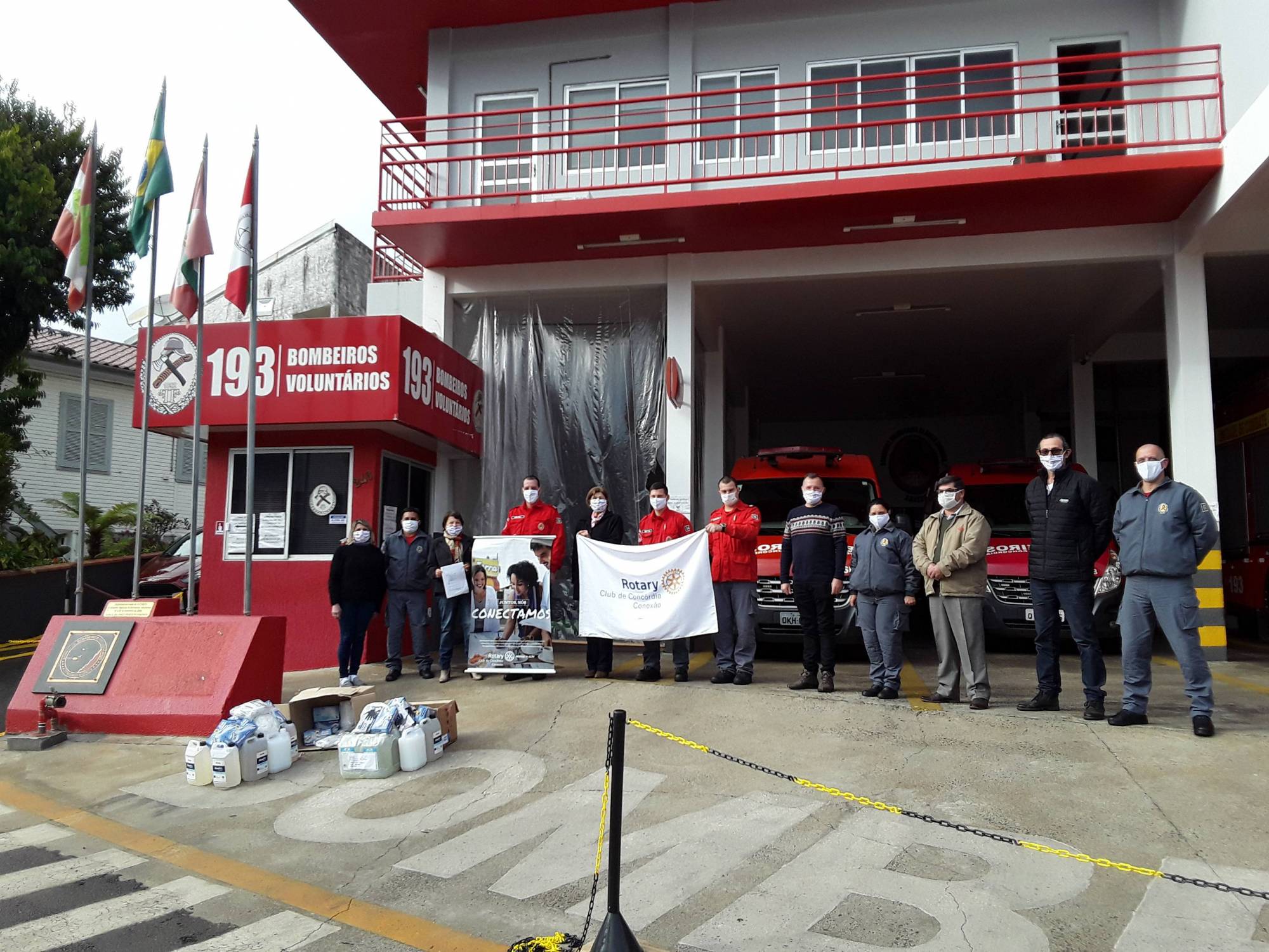 E a manhã do dia 2 de junho não parou por aí. Na sequência de uma operação que o Rotary Club Conexão Concórdia empreendeu, os Anjos da Vidia, também conhecidos como Bombeiros Voluntários de Concórdia receberam o kit completo de ação contra a pandemia. Lá foram luvas, álcool, toucas, máscaras, desinfetantes, sabonete líquido para as mãos dos operários da vida que diariamente ajudam a salvar pessoas.