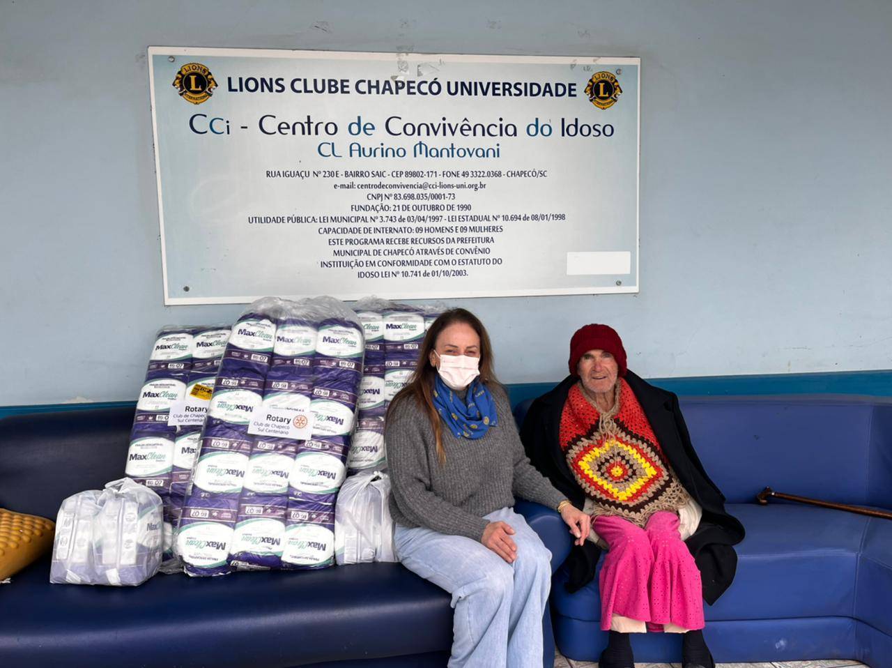 O Rotary Club de Chapecó Sul Centenário no mês de junho, fez doação de fraldas para uma pessoa acamada, com necesidades especias, e o Centro de Convivência do Idoso, da cidade de Chapecó. São ações importantes para o clube, que identifica e se mobiliza para sempre atender.
