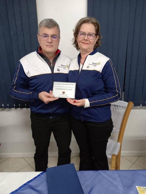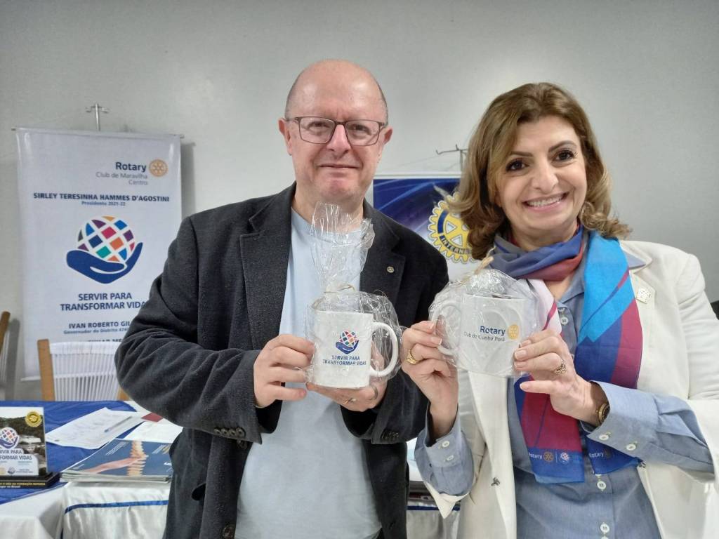 Companheira Presidente Sirley e Esposo GA Marcus, receberam das mãos do Vice - Presidente Darci e Esposa Companheira Nelvi, lembrança recebida do Rotary Club Cunha Porã, no ato de fundação, que ocorreu no dia 21.06.2022.