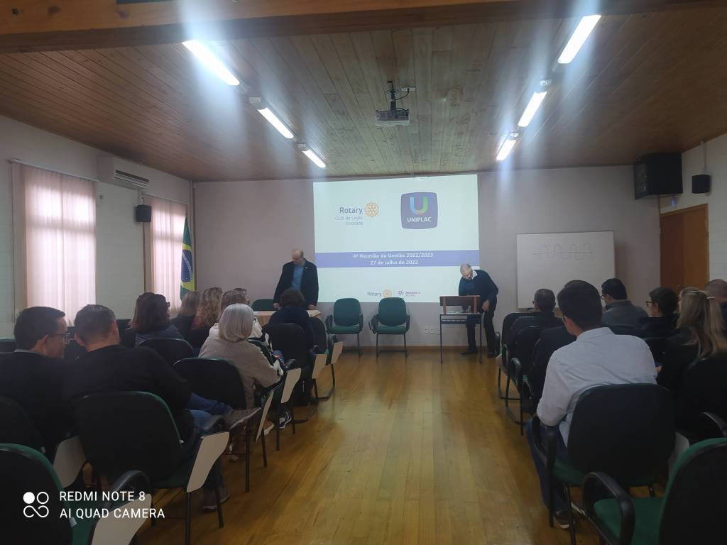 Aconteceu na manhã de quarta feira dia 27 a primeira reunião itinerante Rotary Lages Alvorada, na UNIPLAC (Universidade do Planalto Catarinense). O presidente sr Ilton D'Agostini, apresentou os projetos, como a instituição contribui com a sociedade e região, a governadora gestão 2022/2023 sra Maria Alice Bagio esteve presente e mencionou a importância em ações humanitárias, em potencializar conhecimento e idéias em ações de grandes impactos a comunidade. Na representação da universidade a sra Lilian Kanan falou sobre a história e os projetos de extenção da Unidersidade do Planalto Catarinense UNIPLAC.