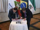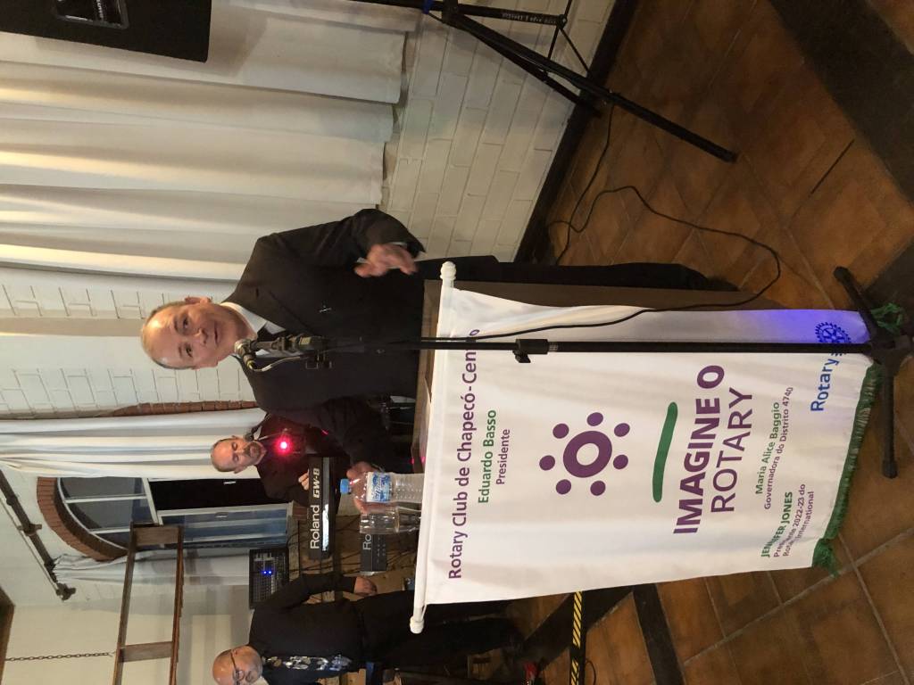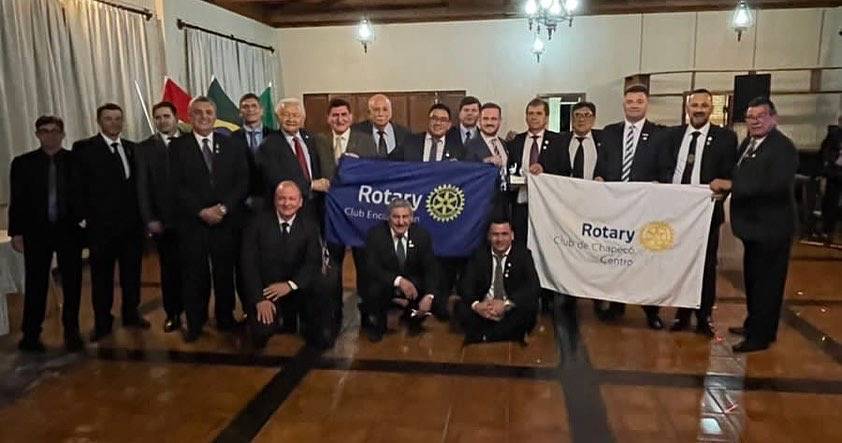Considerando que a irmanação entre clubes permitirá a concretização de projetos que se destinem individual ou conjuntamente ao bem da sociedade, para tal é necessário que os laços privilegiados de amizade sejam a base deste Acordo, o presidente em ação Eduardo Basso e o presidente do Rotary Club de Encarnación Distrito 4.845, Paraguai sr. Carlos Sanchez assinaram nesse ato o Acordo de IRMANAÇÃO entre o Rotary Club de Chapecó Centro e o Rotary Club de Encarnación Paraguai.