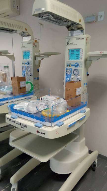 Com esse recurso foram adquiridos os seguintes equipamentos para a UTI Neonatal, dois berços aquecidos, uma Incubadora para recém-nascidos, um eletrocardiógrafo, seis monitores multi-paramétricos, um foco cirúrgico de teto para sala de parto, 1 kit com 3 capacetes para oxigênio e um equipamento de fototerapia microprocessado.