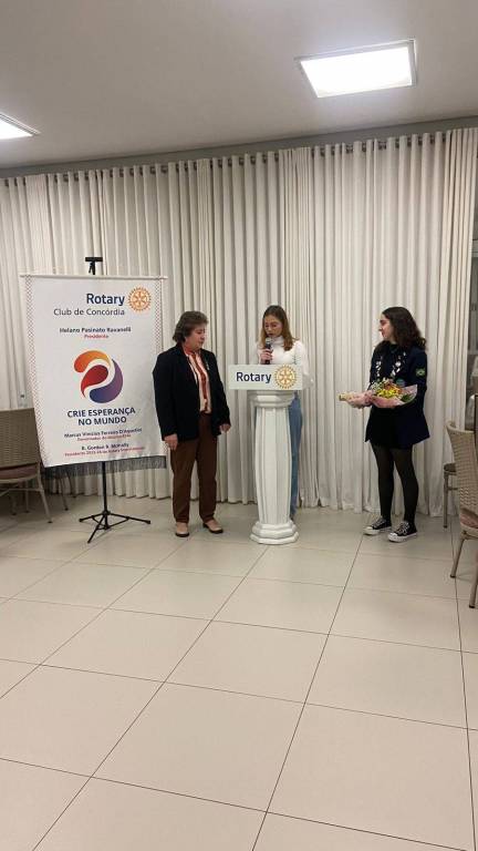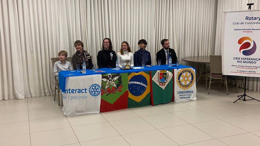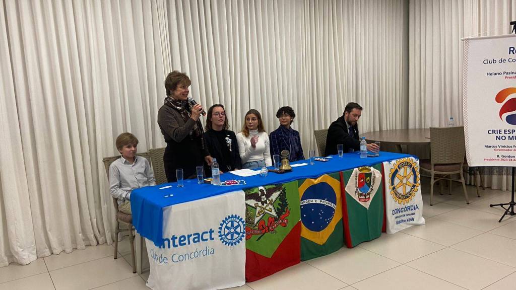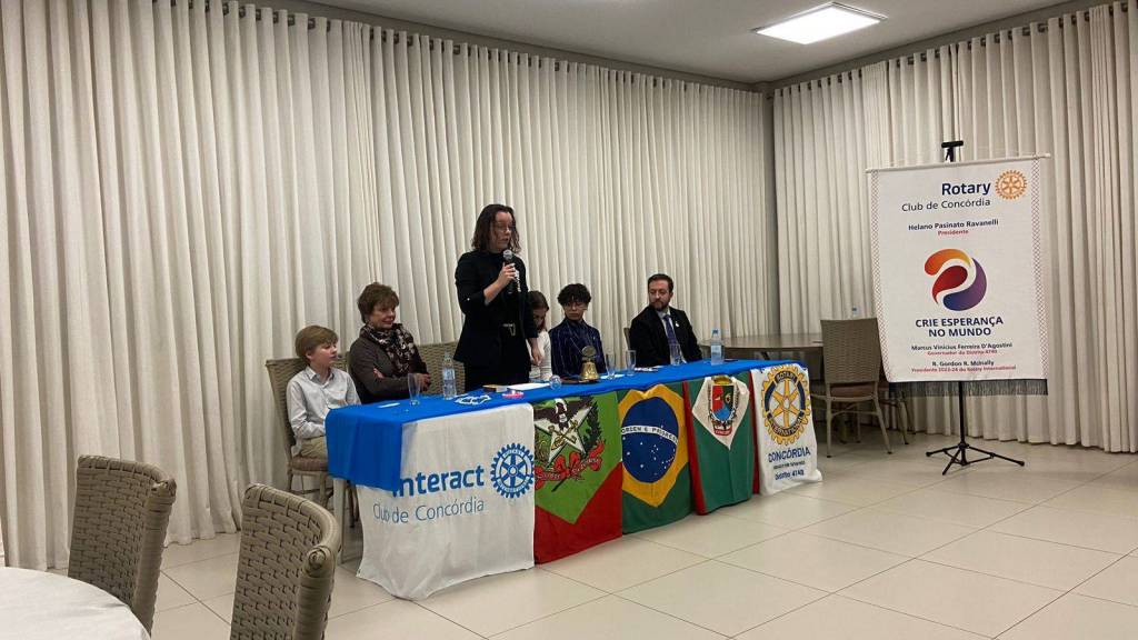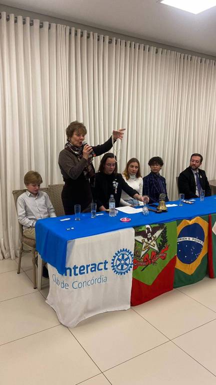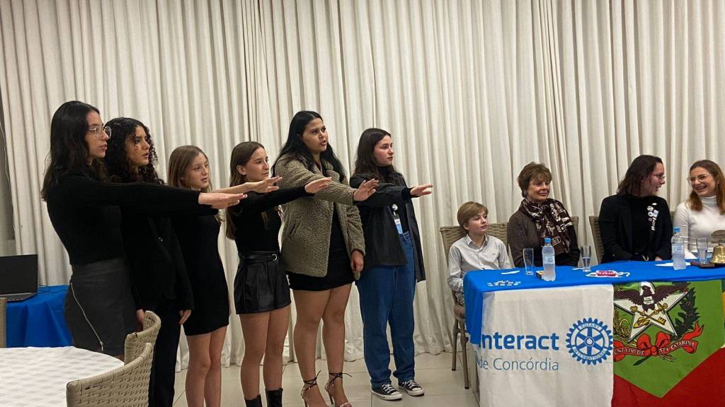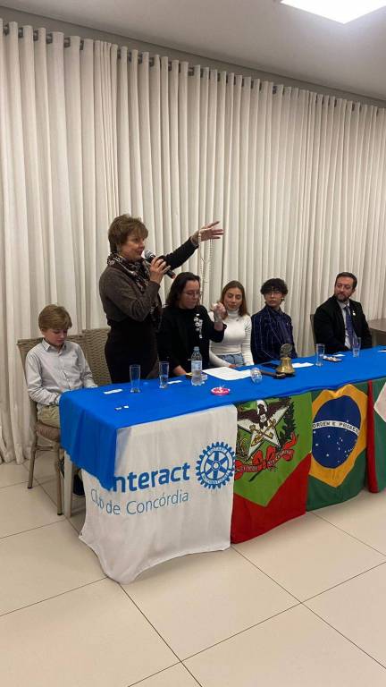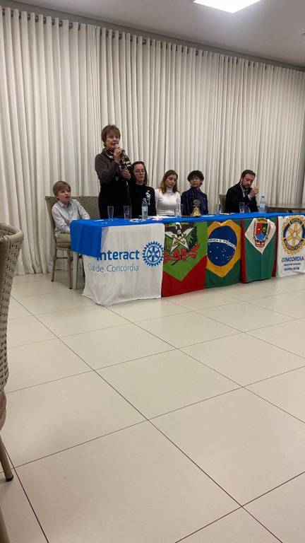 Na data de 08/07/2023 o Interact Club de Concórdia realizou a solenidade de posse de seis novas sócias e do Conselho Diretor 2023/2024. A Presidente Celene Cristina Pigosso Ricci passou o cargo para a companheira e Presidente eleita 2023/2024 Heloísa Gedóz Barão. A qual deu posse a toda a sua equipe de trabalho. Foram empossadas seis novas sócias: Ana Flávia Soares Brandão, Eduarda Buseti Dal Prá, Laura Menute de Oliveira, Helena Fracasso Martins, Olívia Shaefer Pinto e Sophia Fracasso Martins. Para as quais desejamos as boas-vindas! Estiveram presentes na solenidade, a Governadora 2018/2019 do Distrito 4740, Teresinha Lando, O Presidente do Rotary Club de Concórdia, Helano Pasinato Ravanelli, a conselheira do Interact Club de Concórdia, Dulce Joana Weirich, a Representante Distrital de Interact, Juliê Vogt Oliveira Rosa, o Presidente do Rota Kids de Concórdia, Marco Antônio Klein, Rotarianos, Familiares e convidados. Parabéns! A todos