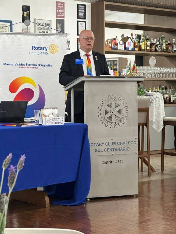 Na data de hoje 31/07/2023, tivemos a visita do governador Marcus D'Agostini do distrito 4740 em nossa 2º reuniao ordinaria da Gestao 2023/2024, nos trouxe um pouco de conhecimento de DQA, e sobre como acessar o site Unyclub e My Rotary de como lançarmos as metas e deixar o site todo preenchido. Nos colocou o quanto é importante fazermos projetos, e contribuirmos com Fundação Rotária e Pólio Plus.