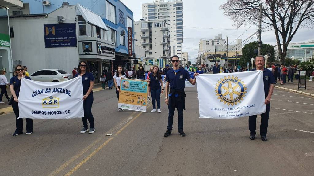 O Rotary Club de Campos Novos participou juntamente com as companheiras da Casa da Amizade Dona Maria Zorzi do tradicional desfile cívico de 7 de setembro na cidade de Campos Novos. Contamos com a presença da nossa intercambista Lily e alunas do projeto de Educação financeira em parceria com Academia da moeda.