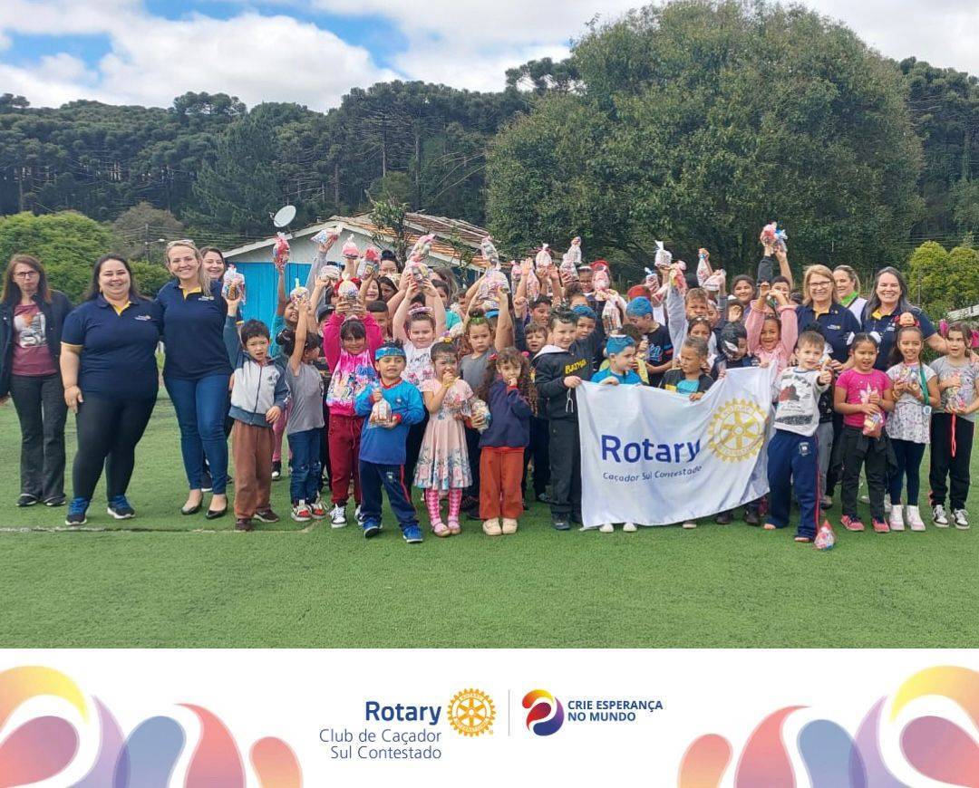 Além das crianças da Escola, outras crianças também receberam mimos. Foram no total 200 crianças contempladas pelo Rotary Clube Caçador Sul Contestado.