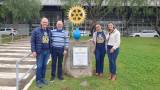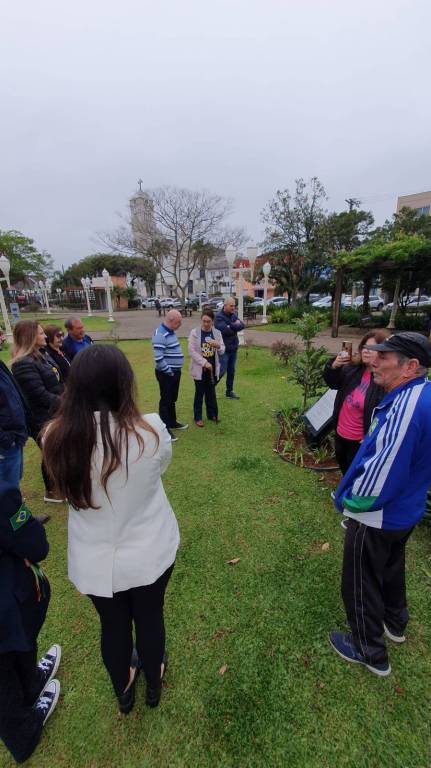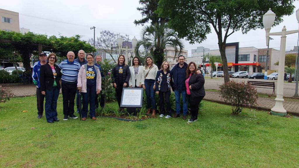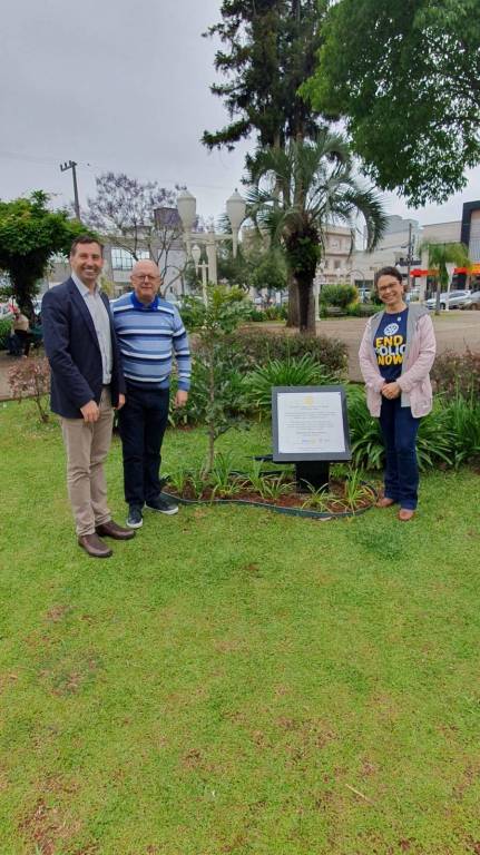 Iniciamos inaugurando o marco da Árvore do Rotary na praça central.