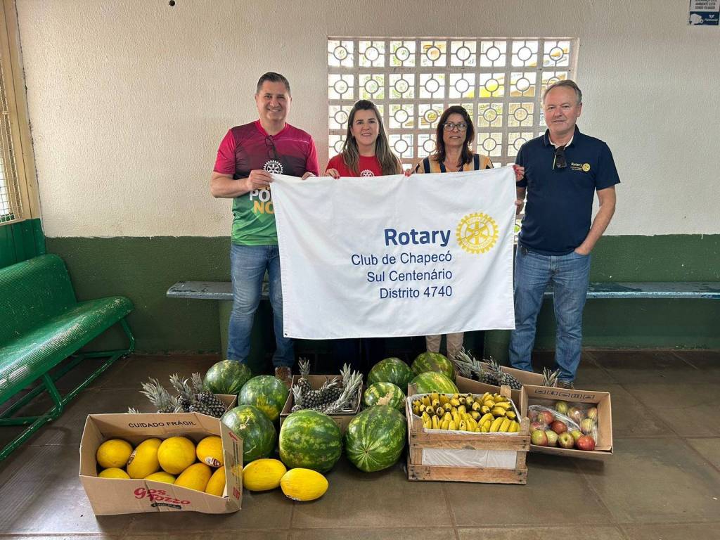 Entrega de frutas para a Escola Parque Cidadã Leonel de Moura Brizola localizada no bairro São Pedro foi feito entrega de frutas para a festa das criançãs em comemoração ao Dia das Crianças, foi uma tarde com salada de frutas e frutas em pedaço e muitas brincadeiras uma tarde de muitas diversões e comilança as crianças se divertiram muito, pois estavam comemorando o seu dia, e o Rotary Sul Centenário esta sempre presente em ações de companherismo com as escolas e entidades da cidade de Chapecó.