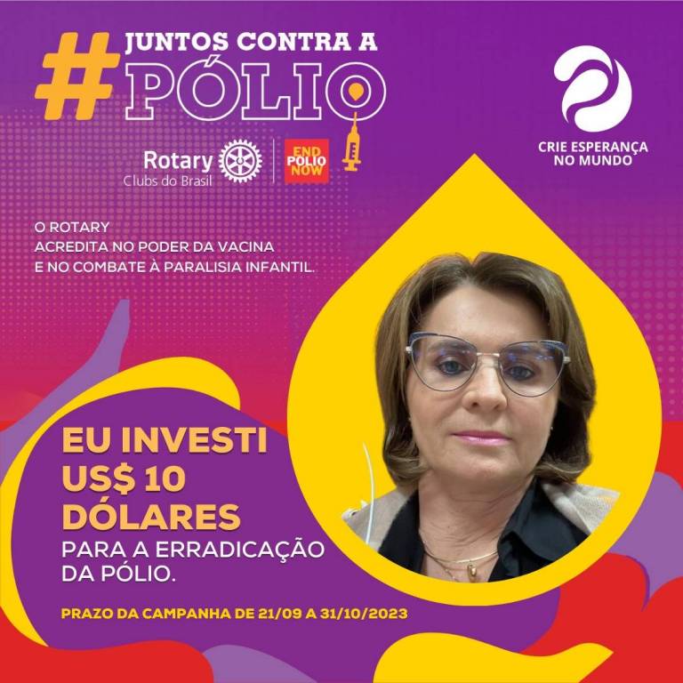 A companheira Noeli Teresinha Dall Igna Bordignon colaborou com a campanha "EU INVISTI S$10" na Pólio.