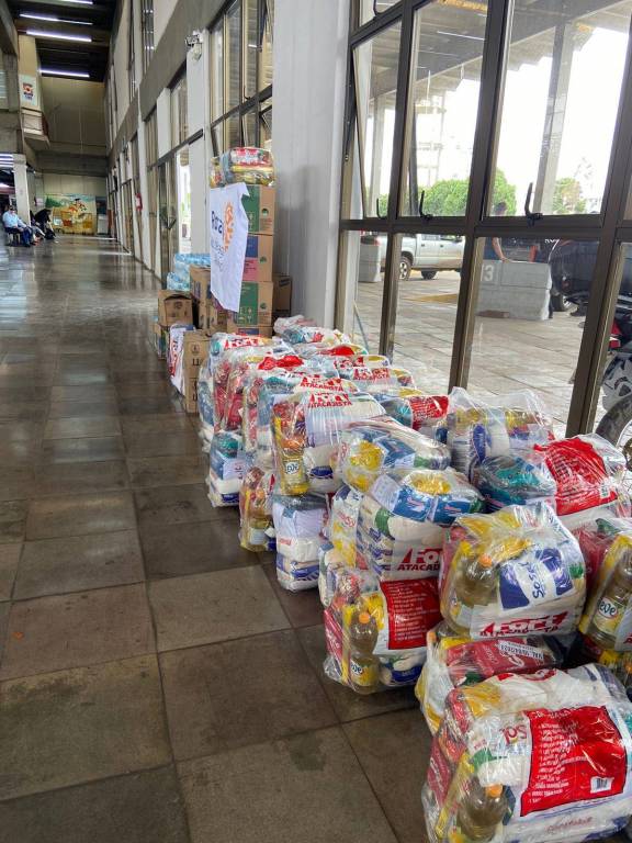 Foram adquiridos no comércio local diversos itens, como cestas básicas, água potável, materiais de limpeza, roupas infantis, roupas masculinas e roupas femininas.