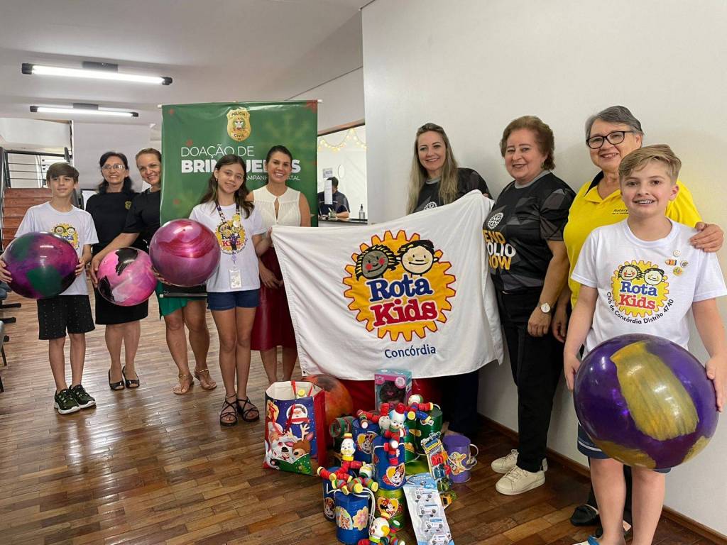 No dia 12 de dezembro de 2023 o Rota Kids Club de Concórdia fez a doação de 60 brinquedos para a Campanha de Natal da Polícia Civil de Concórdia. A maioria dos brinquedos foram confeccionados pelos próprios Rotakidianos com material reciclável, como pés de lata, bilboquês e palhacinhos. além desses brinquedos também foram doados carrinhos, bonecas e bolas. Os quais foram adquiridos com recursos arrecadados por meio da venda de parte dos brinquedos confeccionados, em duas edições da Feira na Rua Coberta. no centro de Concórdia. Juntos tornamos o mundo melhor! Gratidão a todos!
