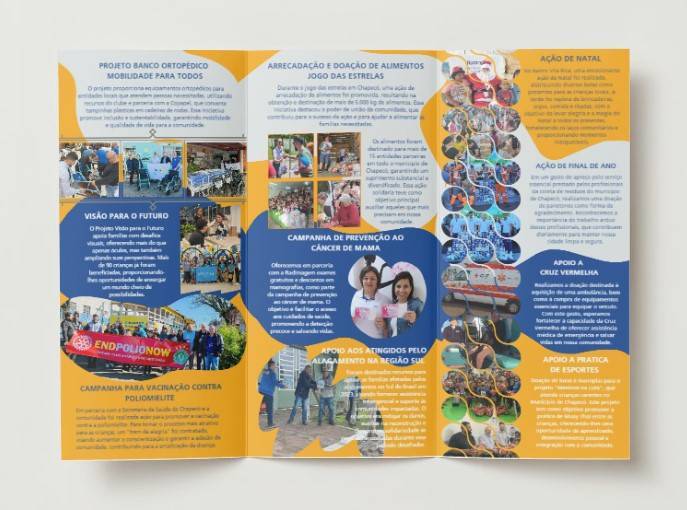 Além disso, o Rotary Club demonstrou apoio às práticas esportivas, através da doação de materiais para o projeto "Meninos na Luta", e promoveu a solidariedade por meio da arrecadação e doação de alimentos durante o "Jogo das Estrelas" em Chapecó.