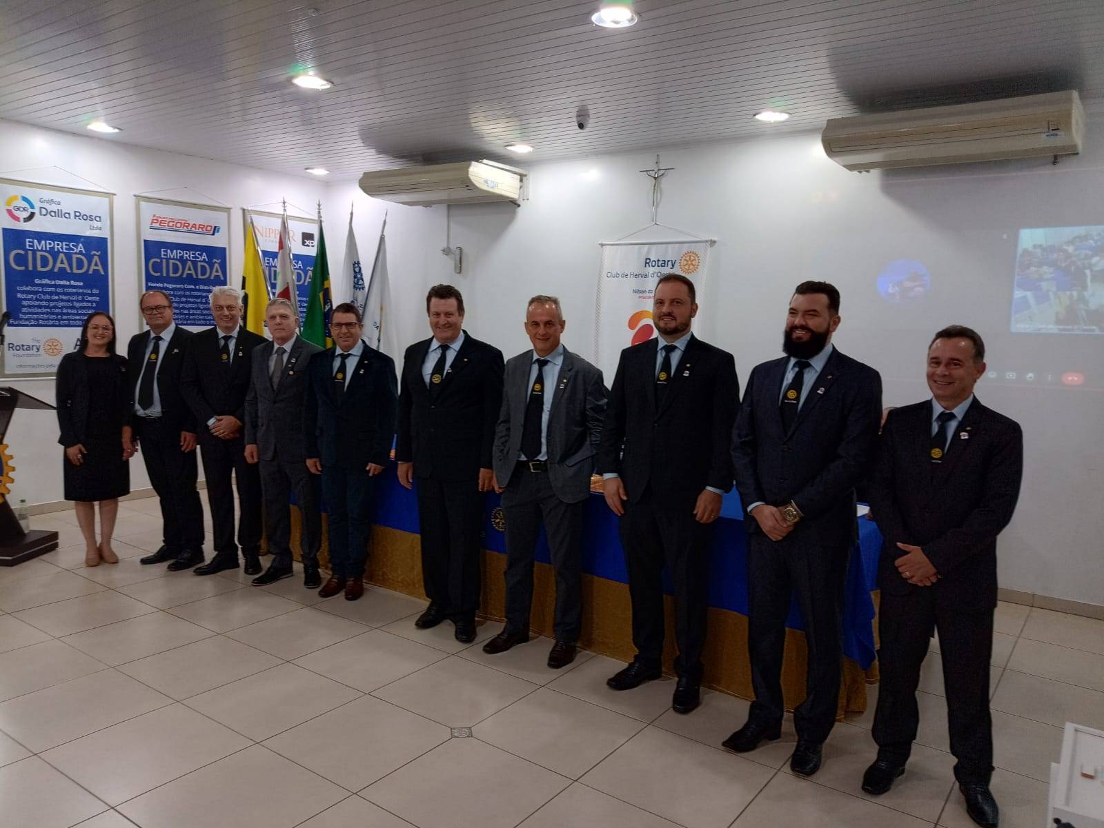 Em reunião festiva realizada na última terça-feira dia 26/03/2024, o Rotary Club de Herval Doeste, empossou 10 novos associados, novos companheiros que entram para somar forças nas atividades do Rotary. O Presidente Sr. Nilson da Rosa juntamente com o Protocolo Sr. André Neuhauser conduziram os trabalhos.. Estiveram presentes EGD e DQA do Distrito Sr. Fernando Junior Ambrósio e também o presidente da Comissão da Fundação Rotária Sr. Paulo Henrique Buffon que na ocasião representou o Governador do Distrito Sr. Marcos... Logo após foi servido um excelente jantar. Desejamos boas vindas aos novos associados e que sejam felizes em Rotary.