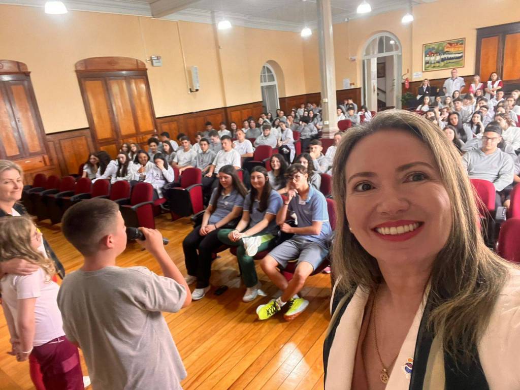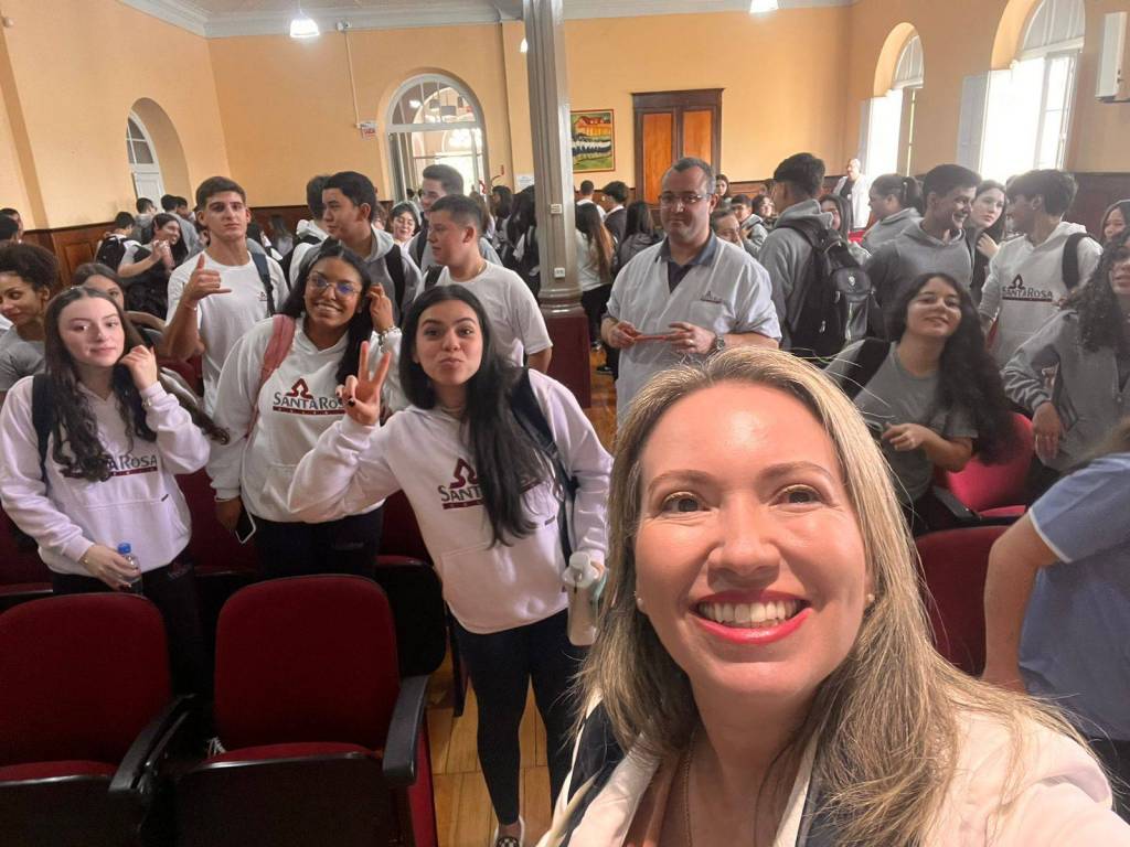 Estiveram presentes aproximadamente duzentos estudantes do Colégio Santa Rosa, que ouviram orientações e testemunhos dos integrantes do Rota Kids de Lages, do Interact de Lages e também da Governadora de Rotary 2022-23, Maria Alice Baggio e das companheiras Kely Vitória e da Daniele Menolli.