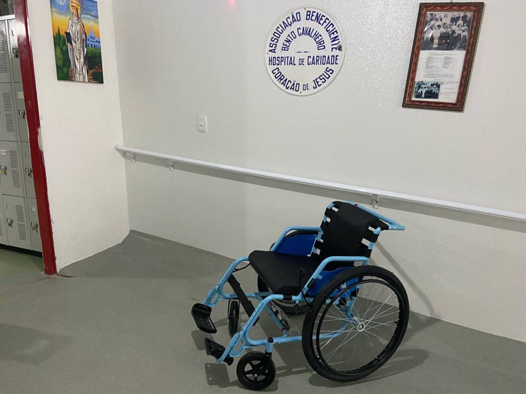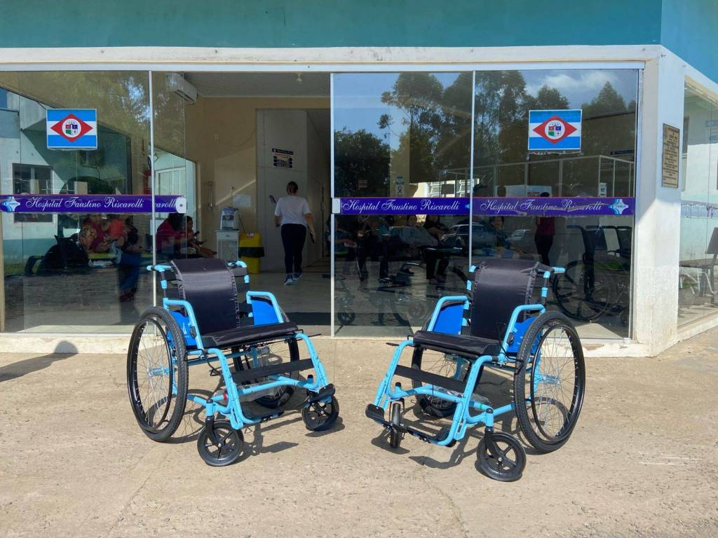 Foram entregues duas cadeiras de rodas para a UNIPLAC, duas cadeiras de rodas para o Hospital de Correia Pinto e uma cadeira de roda para o Hospital de São Joaquim.