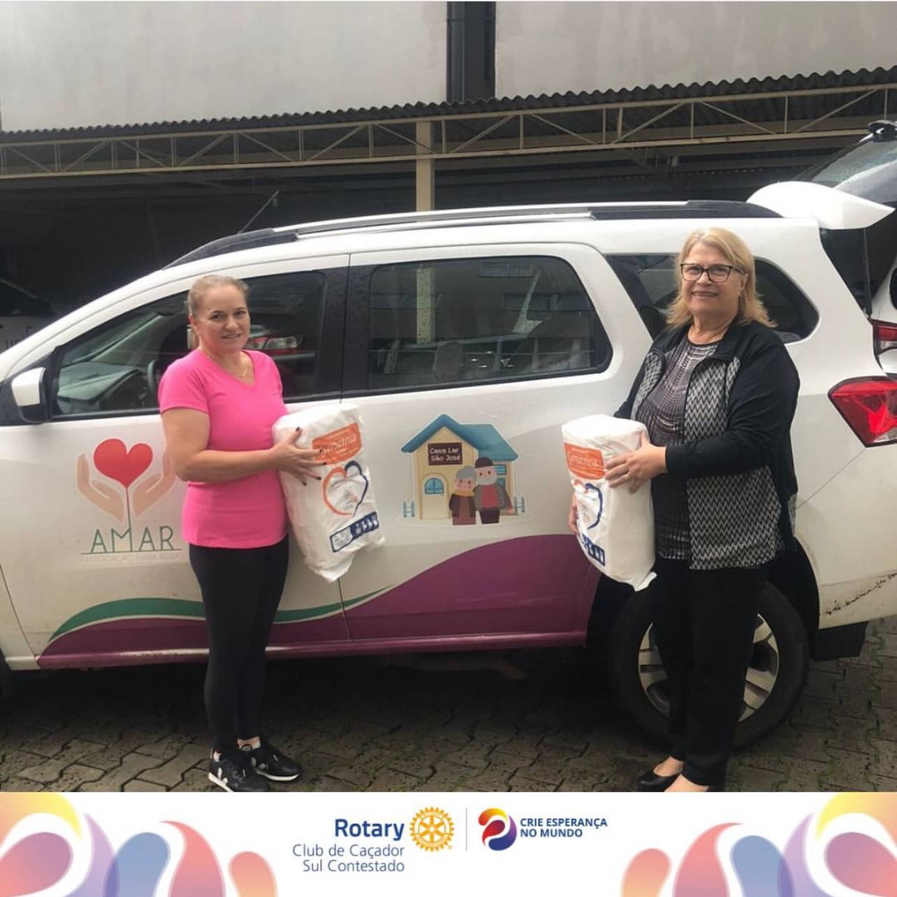 Cumprindo os objetivos do Projeto Cuidar com Qualidade, o Rotary Caçador Sul Contestedo fez a entrega de 2280 fraldas geriátricas neste mês de abril.