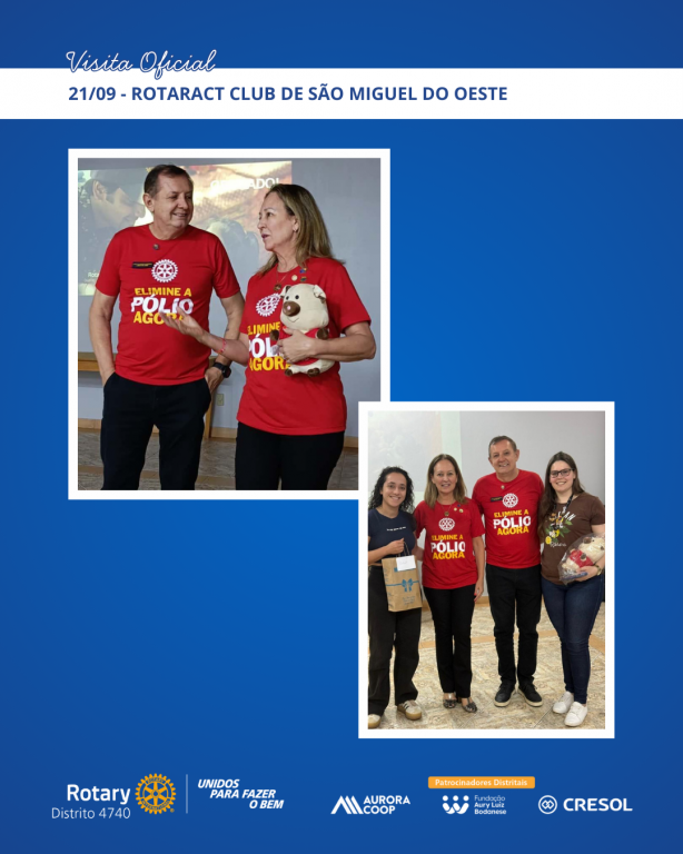 Governador Elton e Silvana seguem levando Rotary e Polio Pig pelas Visitas Oficiais