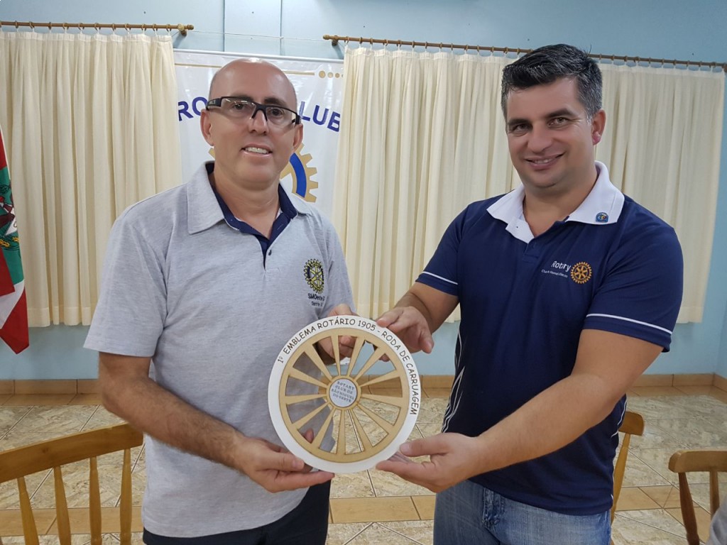 Como surgiu o símbolo do Rotary? Esta é uma pergunta que todo rotariano já fez. Mas nem todo rotariano sabe a resposta. De acordo com material disponibilizado, pouco tempo depois de formado o Rotary, em 1905, os sócios se reuniram para discutir o desenho de um emblema que pudesse simbolizar a entidade. A primeira ideia, atribuída a Paul Harris, seria de um símbolo em formato redondo, cíclico, como uma roda, a qual simbolizaria a civilização e o movimento constante. O membro escolhido para projetar a primeira insígnia de Rotary foi Montague M. Bear, do Rotary Club de Chicago. Montague (Monty), que era tipógrafo-gravador desenhou o início do que hoje conhecemos como “roda denteada”, que na época foi chamada de “Roda de Carruagem”. O Rotary foi criado como um clube onde relacionamentos profissionais pudessem ser transformados em amizade. Talvez, o companheirismo que existe dentro dos clubes e entre os clubes seja o que torna o Rotary diferente e especial. Cada visita é sempre marcada por conversa animada e regada de boas histórias. Foi com esta motivação que o Rotary Club de Herval d’Oeste recebeu neste domingo, dia 22 de abril, os companheiros do Rotary Club de Joaçaba. Os companheiros de Joaçaba estavam sendo esperados para um almoço. Foi servido churrasco, batata assada, aipim com bacon, pão e saladas. Os companheiros de Joaçaba entregaram a Roda de Carruagem ao Clube de Herval. Na terça-feira, dia 24 de abril, alguns rotarianos de Herval d’Oeste deslocaram-se até São Miguel do Oeste, participaram da reunião e fizeram a entrega da Roda de Carruagem. O Rotary Club de Herval d’Oeste agradece aos companheiros de Joaçaba e São Miguel do Oeste pela conversa, acolhimento e pelas boas lembranças.