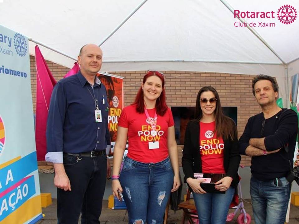 No sábado (04) o Rotaract Club de Xaxim participou da Ação Cooperada da Aurora Alimentos, realizada no pátio do SuperAlfa, em Xaxim. A tarde foi movimentada e contou com muitas atividades, brincadeiras, e orientações em geral. Foram realizadas atividades físicas, brincadeiras, jogos, dicas de cuidados com a saúde, orientação financeira, contação de histórias , cortes de cabelo gratuitos entre outras tantas atividades desenvolvidas por diversas entidades parceiras. Nosso clube esteve presente juntamente com o Rotary Club de Xaxim, que divulgou seu banco ortopédico e a campanha nacional de vacinação contra a pólio e o sarampo, que inicia na próxima segunda-feira 06.