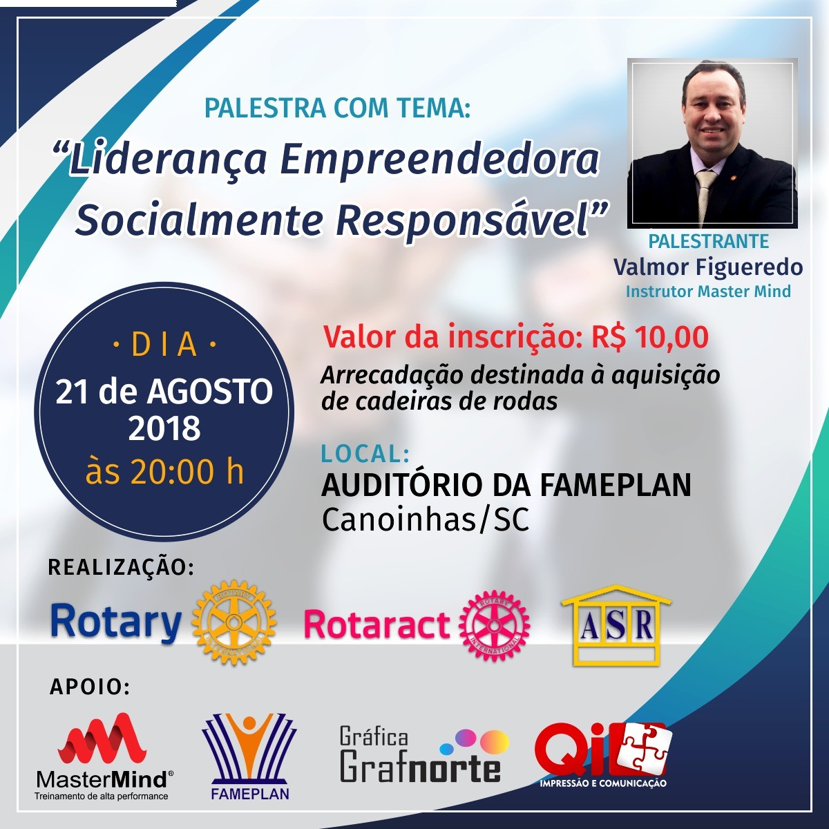 No dia 21 de agosto o Rotary Clube de Canoinhas promove Palestra( NOME DA PALESTRA)