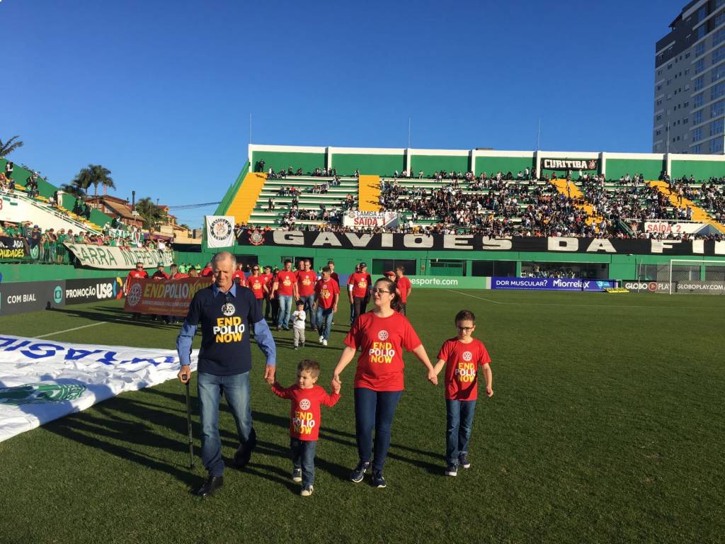 O Rotary Club de Chapecó Sul Centenário, em parceria com o D 4740, entraram em campo, na partida contra a Poliomielite e Sarampo. Na data de, 12/08/2018, estiveram presentes na Arena Condá, onde, no intervalo do jogo, percorreram o campo divulgando a campanha e lembrando da importância da vacinação. Durante a passagem, o Sr. Nelci Frandoloso, pai da companheira Fabiula, do Rotary Club de Chapecó Integração, esteve acompanhado da filha e dois netos, para sensibilizar e ratificar sobre a importância da vacinação. Ele, passou Poliomielite aos 03 anos de idade, ficando com sequelas, devido não ter acesso a vacina. Sua filha e netos, estão protegidos devido a vacinação. A mobilização contou com a presença de outros clubes de Rotary de Chapecó.