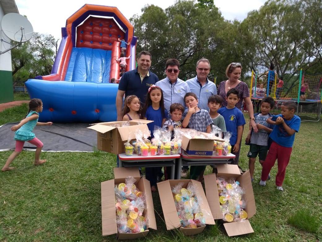 Os companheiros do Rotary Club de Chapecó Sul Centenário, estiveram entregando presente do Dia das Crianças, na escola do Distrito de Marcehal Bormann - Escola Nova Aurora. Foram agraciadas, 127 crianças.