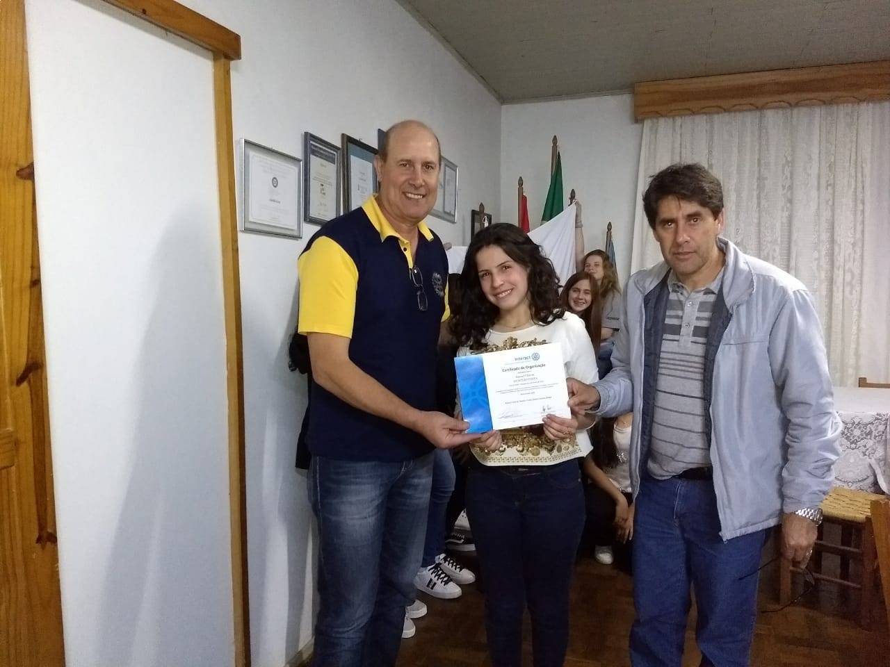 Na ocasião, o presidente do Rotary Club Otacílio Costa, Acilio Spíndola, fez a entrega simbólica do certificado, reconhecendo a existência do Clube, a presidente do Interact, Ana Luiza Boaventura, e ao conselheiro do Interact, o rotariano Sérgio Pinheiro.