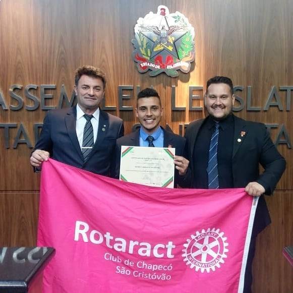 Rotaract Club de Chapecó - São Cristóvão recebe certificado de Responsabilidade Social de Santa Catarina pela ALESC