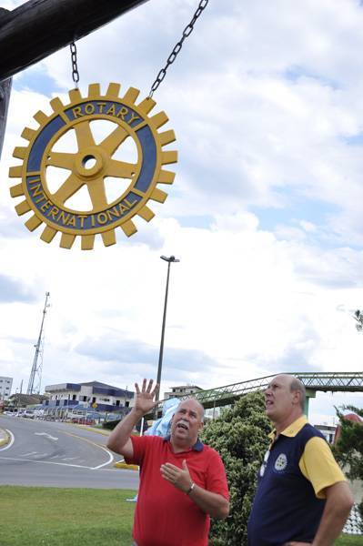 Outro compromisso foi participar de um ato simbólico que marcou a colocação do novo marco rotário na rótula da passarela, na SC 114. Estiveram presentes o prefeito Luiz Carlos Xavier, o Tio Ligas, e o presidente da Câmara, Edson Pasold.