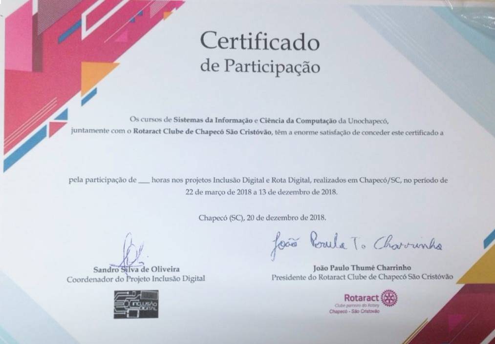 É com muito orgulho e carinho que a comissão do Rota Digital entrega esses certificados, esperamos que neste semestre que se encerra, tenhamos feito a diferença na vida de cada aluno e que sejam apenas os primeiros passos para um grande futuro do projeto e de seus participantes.