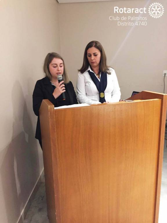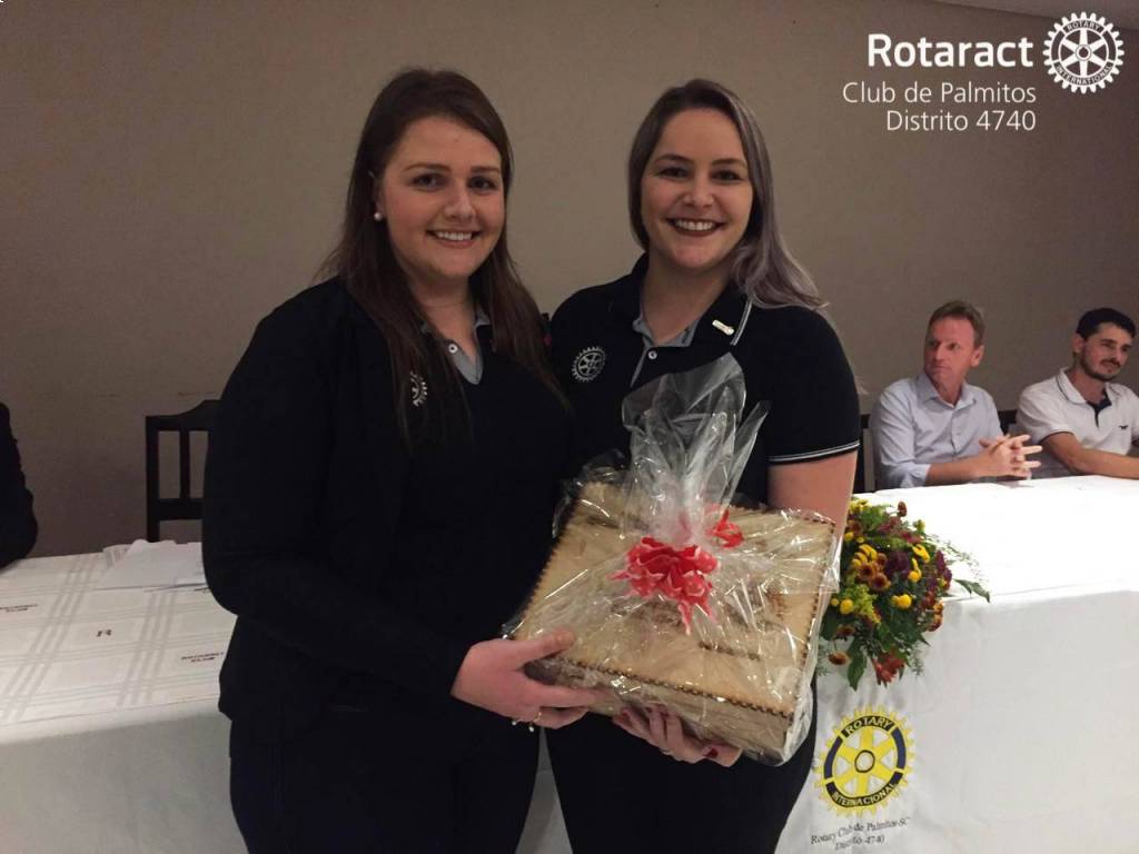 Na sequência, a companheira Andressa Cristina Schlemmer foi empossada com presidente do Rotaract Club de Palmitos, recebendo o cargo das mãos da presidente gestão 2018/2019, Aline Reinheimer, os quais fizeram seus pronunciamentos. Aline menciona estar orgulhoso em compartilhar a gestão com pessoas tão capazes e dedicadas. “Quero agradecer a cada um de vocês pelo esforço e dedicação que colocaram neste trabalho, sim, pois ser rotaractiano é, sem dúvida, o emprego mais difícil. Obrigado, equipe! Vocês são a prova de que o sucesso se alcança através de talento, determinação e trabalho duro”, declara.