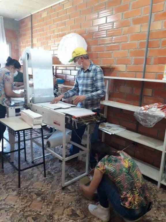 Confecção de Fraldas hoje (03/09/2019) , na Associação Comunitária Dona Ema Sevei. Grupo muito alegre e divertido. O trabalho rendeu 470 fraldas em apenas duas horas de trabalho.