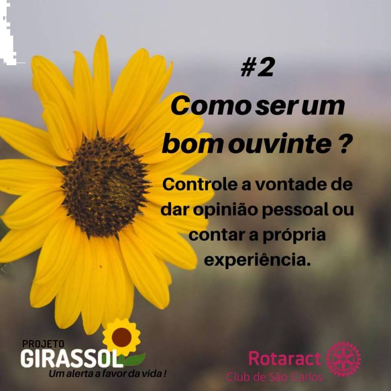 Em alusão a Campanha Setembro Amarelo, no mês de prevenção ao suicídio, o Rotaract Club de São Carlos realiza o Projeto Girassol: um alerta pela vida.