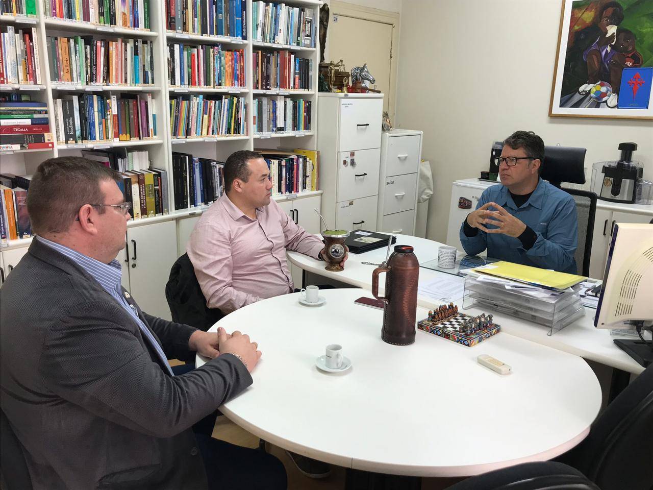Rotarianos Celso Bergmaier e Cleisson Gamboa Cichelero Presidentes das Comissões de Imagem Pública e Comissão de Desenvolvimento do Quadro Associativo do Distrito 4740, associados do Rotary E-Club Distrito 4740-Inspiração foram na data ontem recebidos Pelo Dr. Silvio Dagoberto Orsatto da Juiz de Direito Comarca de Lages, que integra o Rotary Club de Lages-Catedral. Na oportunidade Dr. Silvio D. Orsatto ressaltou o papel do Rotary na sociedade atuando como um agente na promoção da paz, através das mais diferentes ações que são realizadas pela organização. No decorrer do encontro foram apresentadas sugestões de atuação de clubes para que haja na sociedade um ganho com redução de conflitos e consequentemente um desenvolvimento que possa proporcionar mais equilíbrio social e geração empregos e renda.