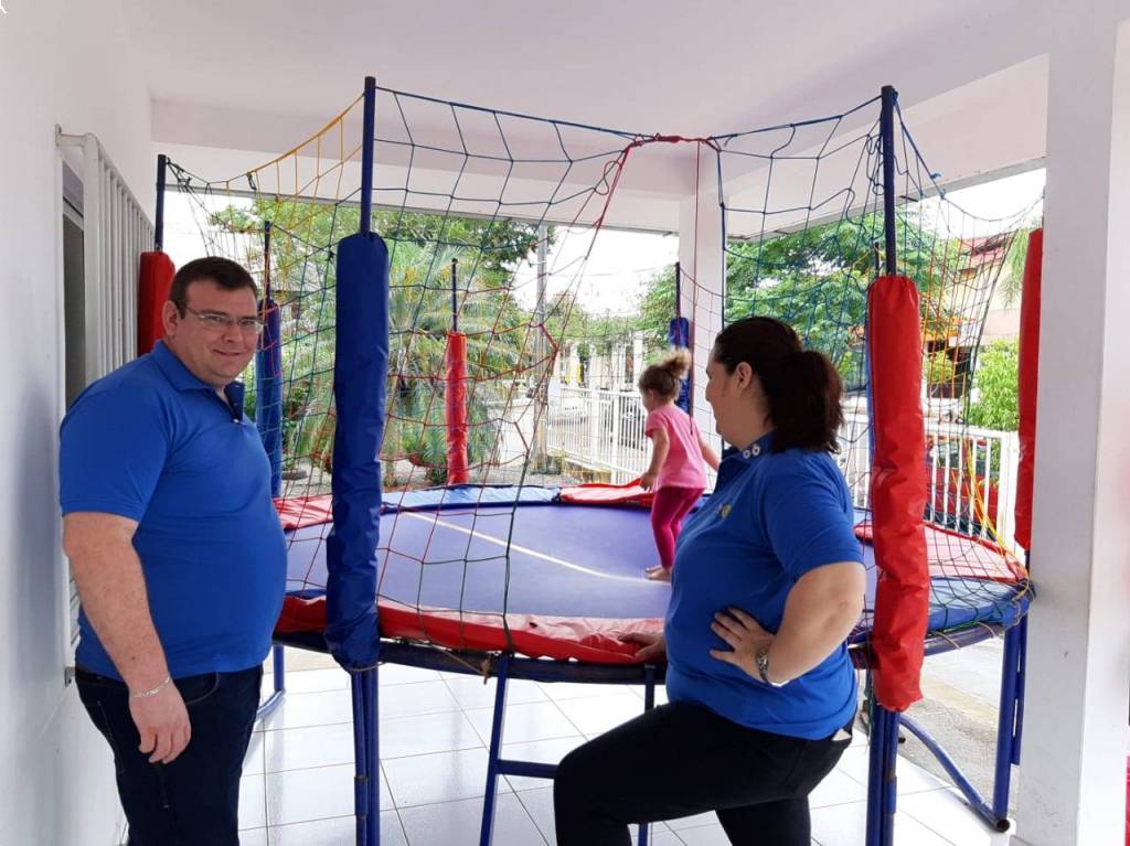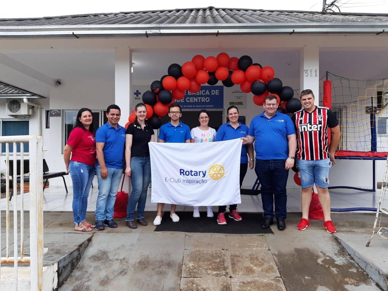 Rotary E-Club Distrito 4740-Inspiração em parceria com a Secretaria Municipal de Saúde do Município de Águas de Chapecó realizou uma ação de apoio na divulgação da Campanha Vacina Brasil (Dia D de Vacinação), Apoio na Recepção dos Pais e Crianças, cuidando de crianças que se divertiam na cama elástica e distribuindo guloseimas.