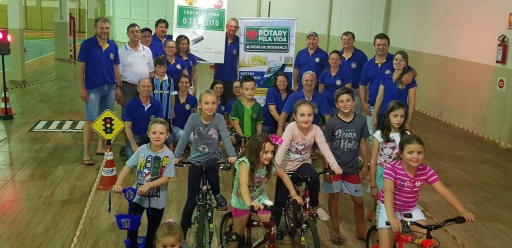 Em parceria com a POLICIA MILITAR e com as redes municipal e estadual de ensino, o Rotary Club de Serra Alta viabilizou a instalação de MINI CIDADE de transito, com orientação de professores e de policiais militares crianças e adolecentes puderam simular situações no transito e aprenderam respeitar a sinalização e os pedestres.